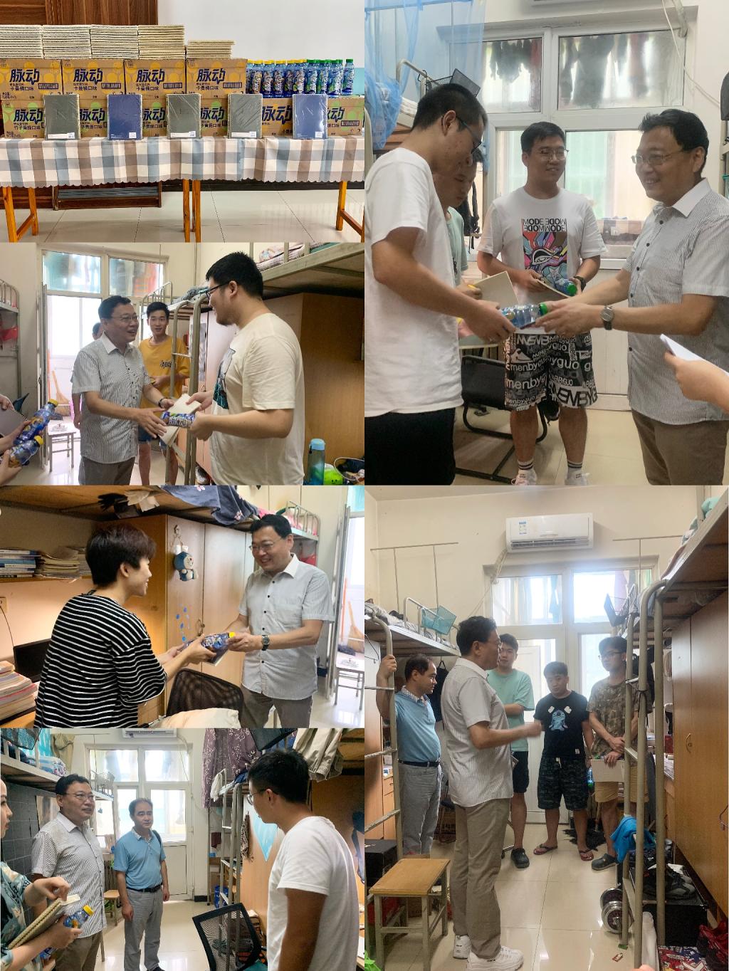 院领导一行先后来到地科楼考研自习室、教室及宿舍看望备考员工,进行深入的交流,并为员工送上了特别准备的笔记本和饮品。