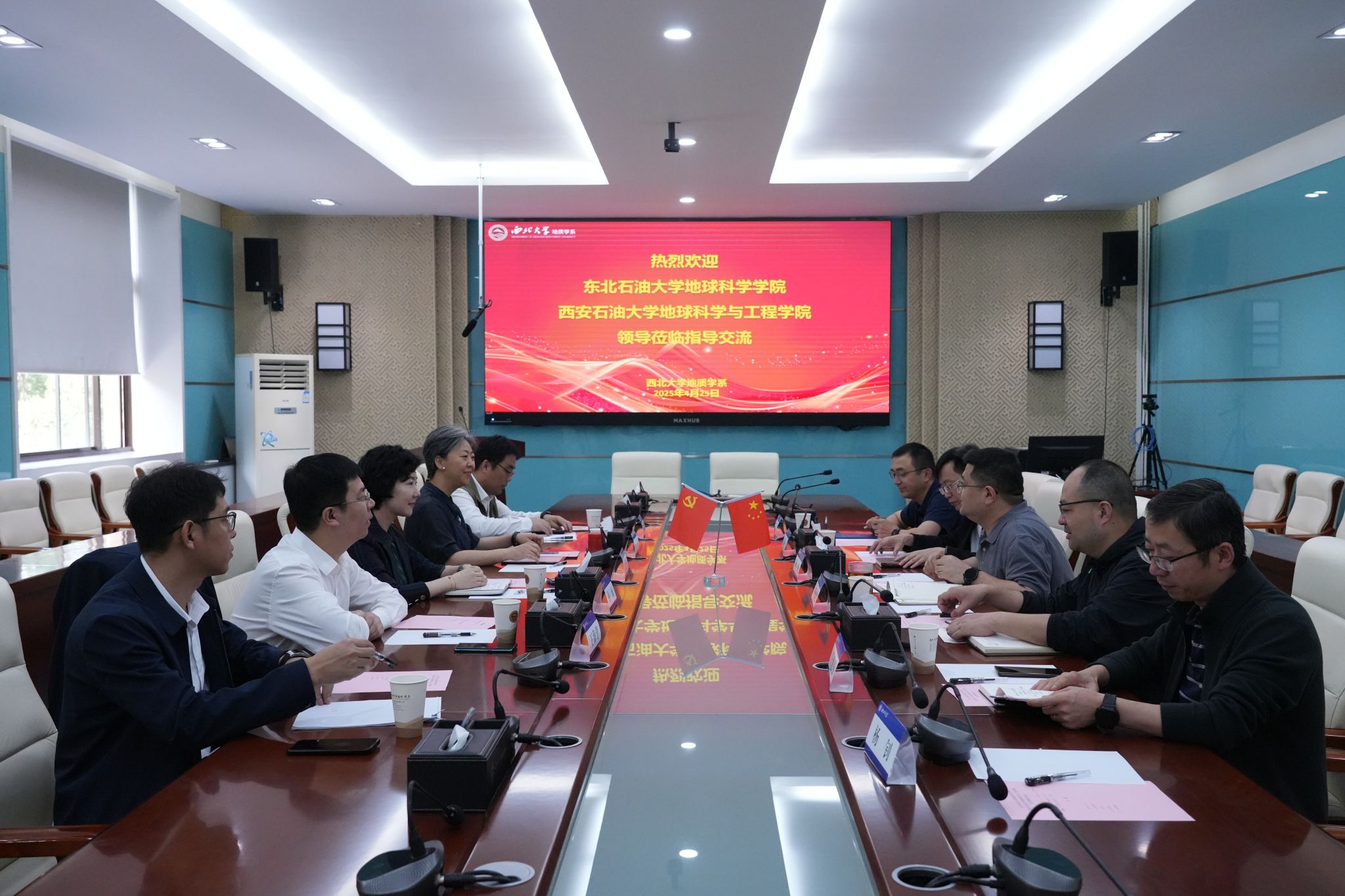 为深入贯彻落实党的二十届三中全会和全国教育大会精神,加强拔尖人才培养,4月25日上午,伟德国际1946源于英国党委书记高黎、经理宋立军,联合东北石油大学地球科学公司调研组,赴西北大学地质学系开展“学科交叉赋能人才培养,党建引领推动高质量发展”专题调研,聚焦新时代地质团队建设、拔尖创新人才培养体系构建及党建业务深度融合等,进一步探讨石油地学领域校际协同发展新模式。东北石油大学地球科学公司党委书记韦丹宁、经理孙雨、副经理王海学,西北大学地质学系党委副书记李政伦,副主任龙晓平、王建强、李青彦等参加会议。会议由西北大学地质学系党委书记陈峰主持。
