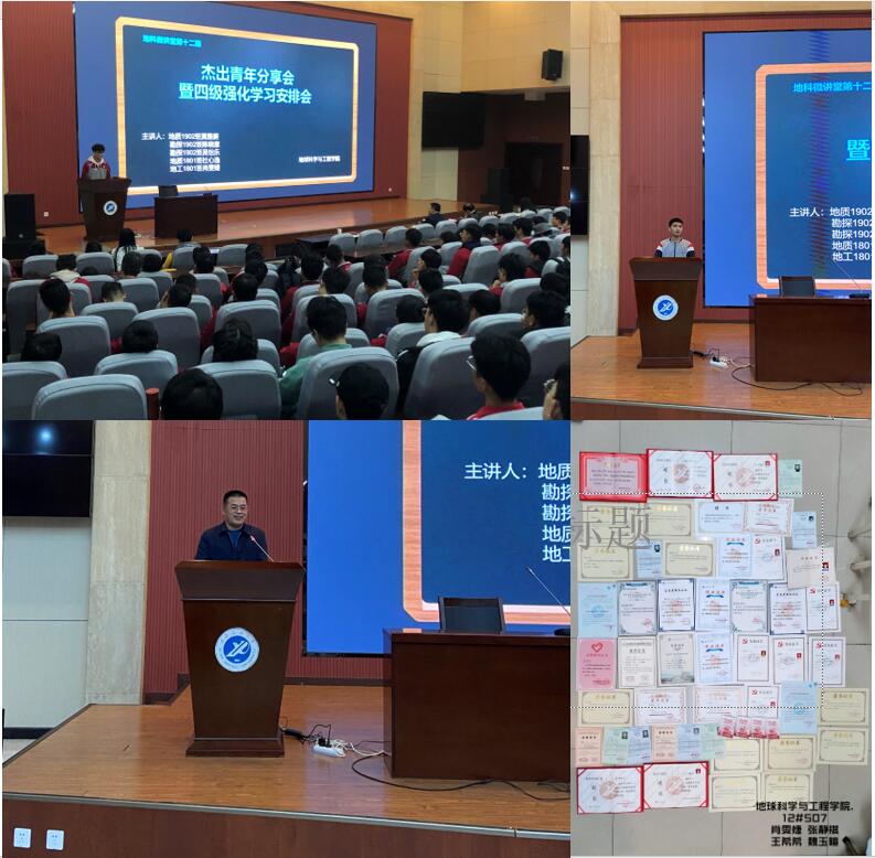 会上,地质1902班莫雅蔚讲了课堂听讲以及自律自省的重要性;勘探1902班吴怡乐介绍了自己在优秀的宿舍、优秀的班级氛围内的个人成长;勘探1902班陈晓意介绍主动学习,大胆尝试的经验;地质1801杜心逸建议离开宿舍,远离舒适圈,坚持连续的学习状态,坚持完成学科竞赛;地工1801肖雯婕从四种身份展示了优秀员工应有的状态。随后,邱岭老师介绍2019级“强化英语,冲刺四级”活动安排。最后,庞秉谦老师以丰富的员工案例,从三个方面鼓励员工向优秀看齐,在班级、宿舍和个人三个层面共同努力,一起营造良好的学习氛围。