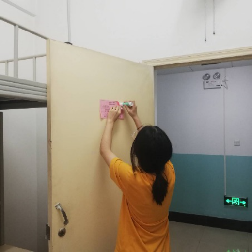 8月27日下午,公司24名本科生员工党员在勘探专业员工第一党支部书记靳兴的带领下为公司2021级新生制作宿舍门贴、信息卡,并在第一时间进行了张贴。