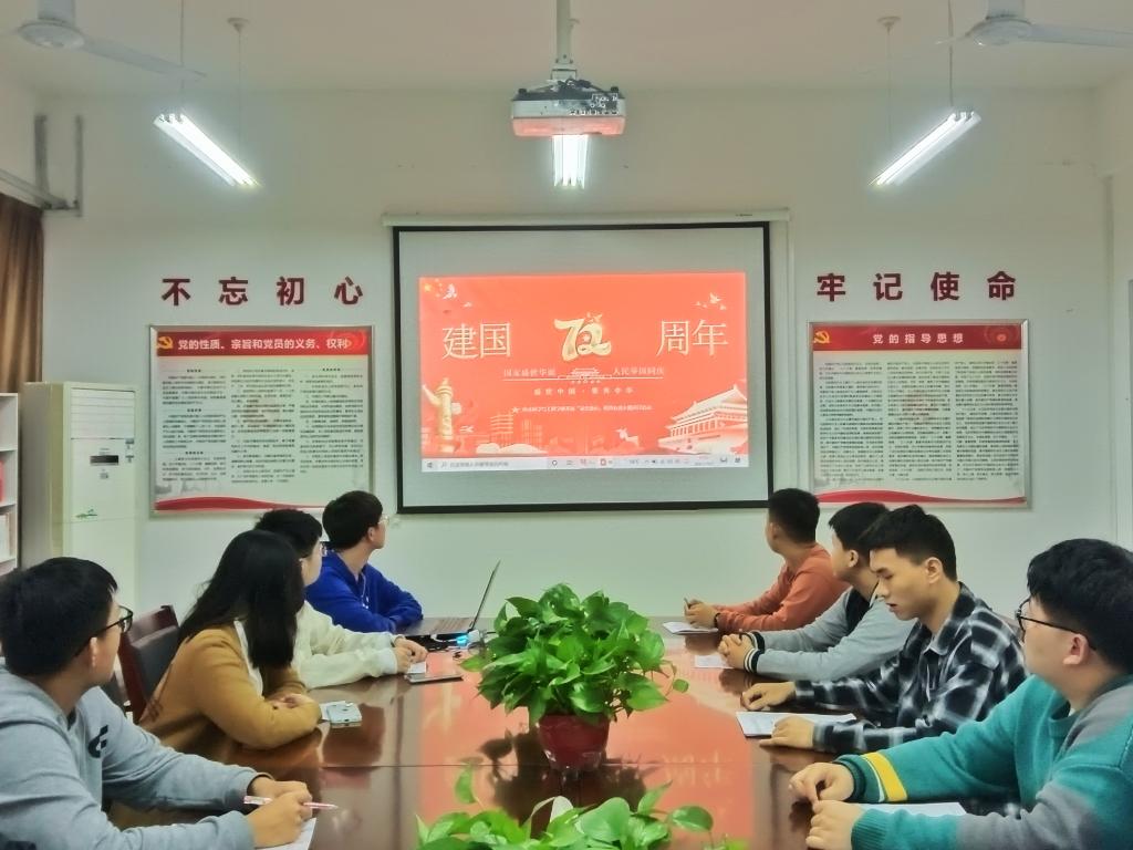 为庆祝中华人民共和国成立72周年,激发员工爱国热情,落实校团委《关于开展“请党放心,强国有我”主题团日活动的通知》,伟德国际1946源于英国团委在国庆节期间组织线上、线下主题团日活动。线下主题团日活动于10月7日下午,在鄠邑校区石工地科楼507组织开展。会议由院员工会主席靳兴主持,2021级辅导员刘宇航老师及公司各级员工干部代表参加本次活动。