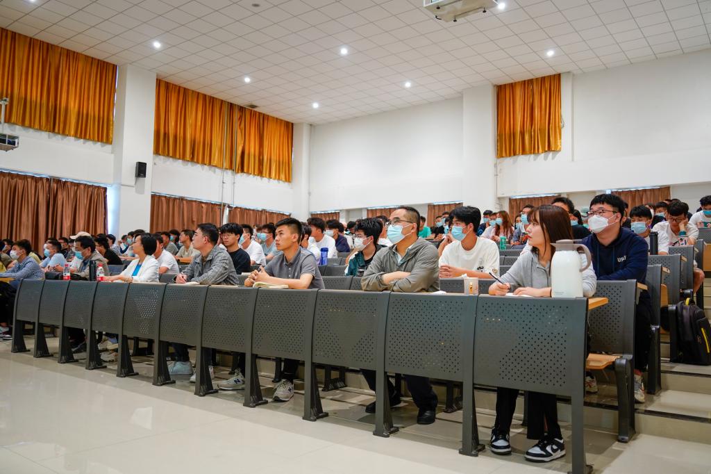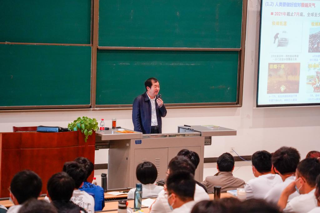 在授课中,李董事长首先围绕“双碳目标”和习近平总书记对统筹有序做好碳达峰、碳中和工作的多次指示,向同学们介绍了全球环境事件动态,阐释了加快碳减排是大势所趋。然后,李董事长分别介绍了世界油气发展趋势和我国油气发展趋势。他以地球演化为切入点,从“能源科技革命”“世界能源新格局”“世界油气工业”“世界天然气工业”“一次能源消费结构变化”等六个方面阐述了世界油气发展趋势。又从油气是国家重要战略资源为切入点,从“新中国石油进出口史”“中国含油气盆地分布”“我国石油进口海上通道”等七个方面阐述了我国油气发展趋势。最后,李董事长结合自己的工作学习感悟,对新能源发展趋势做出展望,对地科学子的学习生活做了指导和要求。他强调我们要积极推动我国能源生产与消费革命,坚持“四个革命 、 一个合作”,不断勤奋学习,刻苦钻研,要面向世界科技前沿、面向经济主战场、面向国家重大需求、面向人民生命健康做出科技创新。他希望大家要牢记习近平总书记的嘱托,在日常学习生活中要爱党爱国爱民,要锤炼品德、勇于创新、实学实干。