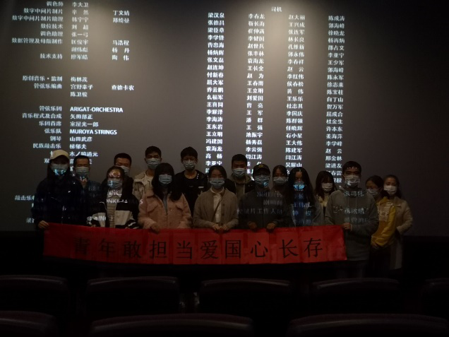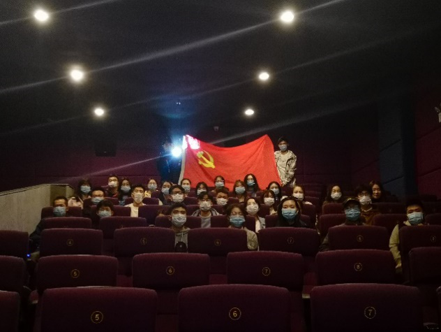 2020年10月13日晚上18.30,全体党员冒雨准时到场,戴好口罩,做好防护措施,有序地进入电影院,等待电影开始。