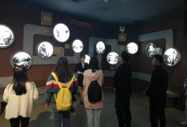 一进门看到的是铁人王进喜胸像,这座胸像与地面代表石油的黑色大理石相呼应,表现出铁人王进喜朴实、坚韧、刚毅、顽强的人格品质和为祖国石油事业奉献一生的伟大胸怀。馆内的展览以铁人王进喜生平事迹为主线,全方位地向参观者呈现了楷模王进喜同志辉煌的一生,集中展现和诠释了“铁人精神”同学们从从艰苦童年、赤诚报国、艰苦创业、科学求实、无私奉献、鞠躬尽瘁、亲切关怀和精神永存八个方面了解“铁人”王进喜同志光辉的一生,以及我国石油工业发展初期的艰辛历程
