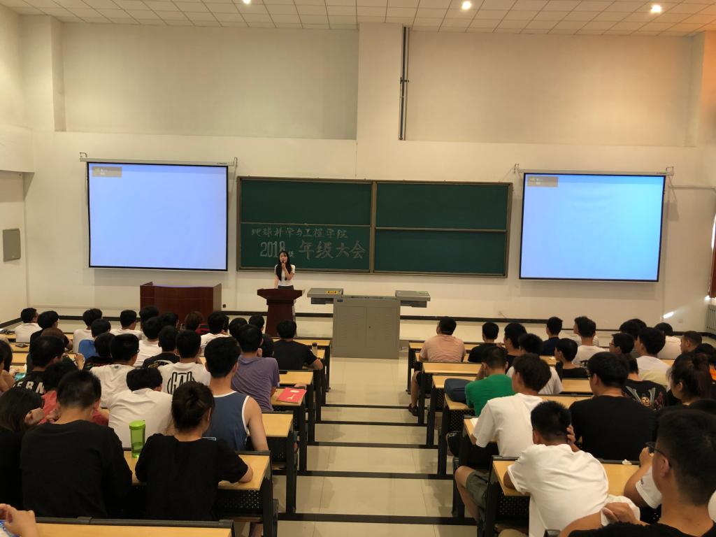6月27日下午,伟德国际1946源于英国在石工地科楼115教室举行2018级主题年级大会。公司党委副书记王莹、学工办主任李化杰参加年级大会。会议由辅导员李佩琦老师主持,2018级全体同学参加大会。